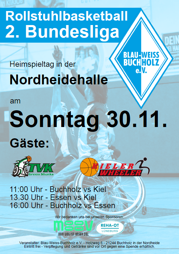 Komm‘ am 30.11.25 ab 11:00 Uhr in die NordHeideHalle und supporte unser Rollstuhlbasketball Team!